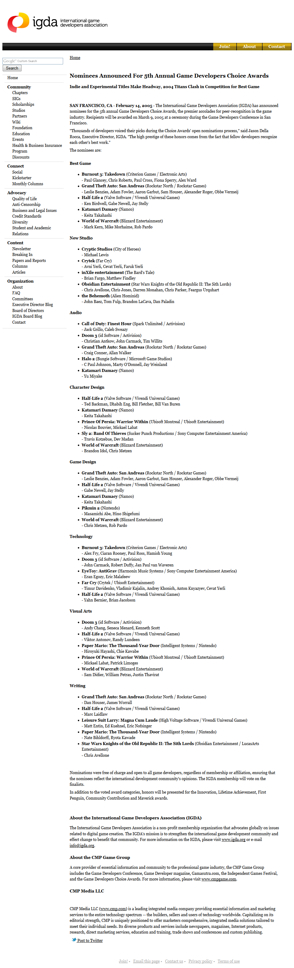 | Most Memorable Games Of The Past 5 Years, #13 | GameSpy, Most Memory Games Of The Past 5 Years, 2004 |
